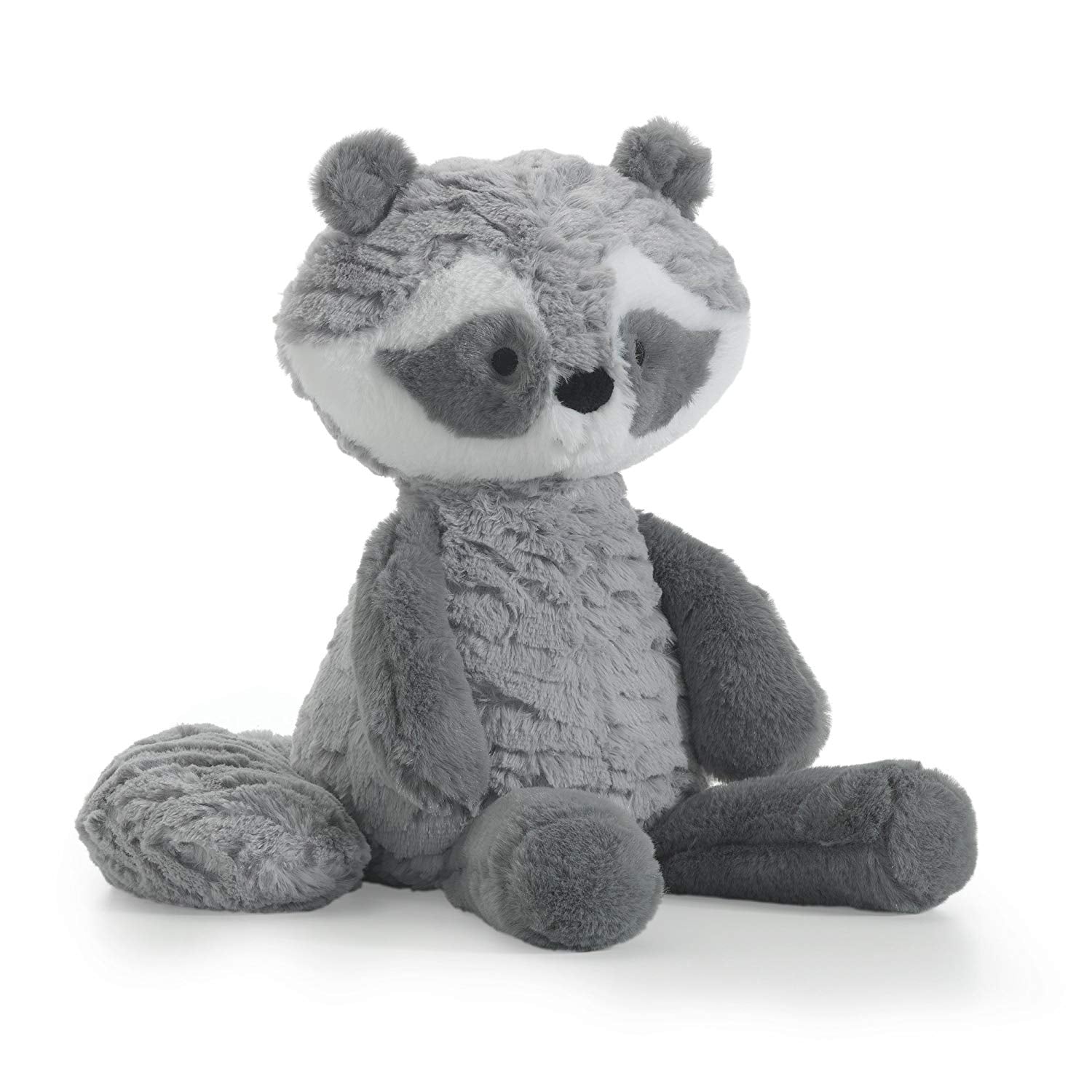 This baby soft raccoon, Suki, is very friendly and has a sweet, happy face. She is made from layered textured fur and is 100% polyester. Stands 11" tall and is 9.5" wide. Imported.